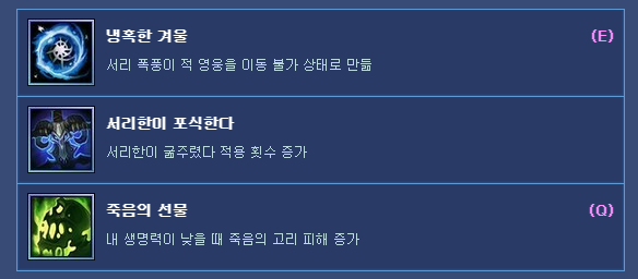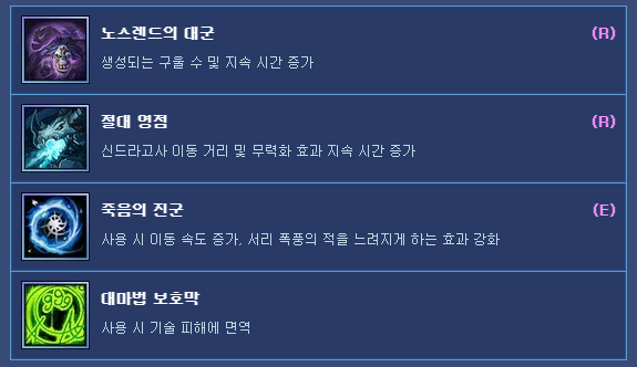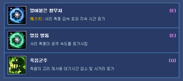 죽음의 진군 : 주력특, 사용시로 되있지만 찍기만 해도 이속이 늘어나고 슬로우가 엄청나게 강해짐