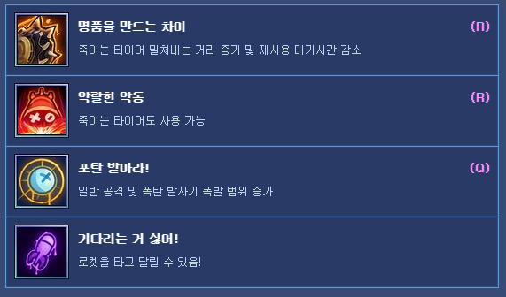 현란한 발놀림 : 주력특, Q정크랫 특성, 이속증가에 평딜증가로 전체적인 운영속도증가