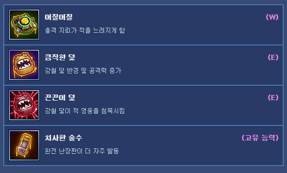 큼직한 덫 : 주력특, 팀에 cc충분하면 갈만함, 침묵 덫 너프로 괜찮아짐
