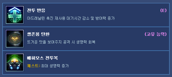 전투 반응 : 주력특, 순간적인 방어력 상승으로 한턴 버팀